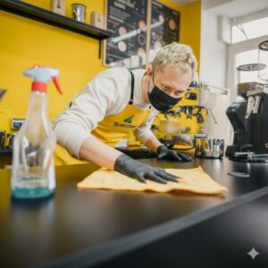 İş sağlığı ve güvenliği standartlarına uygun temizlik yöntemleri uygular